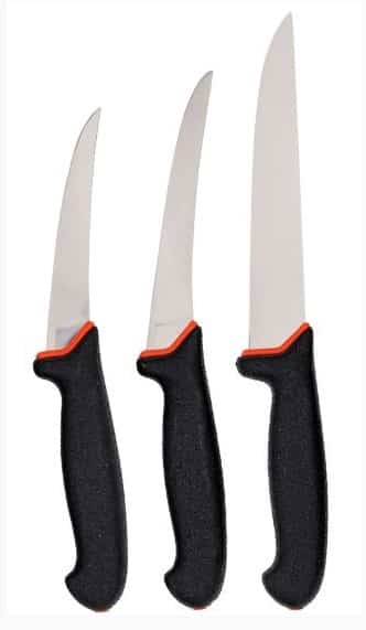 Ergonomiskt utformat handtag med hård kärna och mjukt skal. Något böjliga blad för att lätt komma åt nära runt benen.